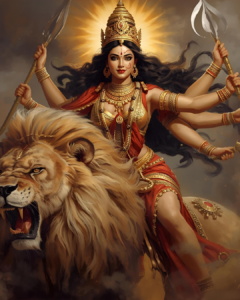 In der Lutealphase begleitet dich archetypisch Durga – die Kriegerin unter den Göttinnen. Sie steht nicht für Härte um der Härte willen, sondern für Schutz, Klarheit und gesunde Abgrenzung.