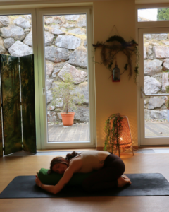 Meine Yogapraxis wird in dieser Zeit sanfter. Ich liege gern auf meiner Akupressurmatte, bewege mich durch weiche, kraftvolle Haltungen und wende mich mehr dem Jnana Yoga zu – dem Yoga des Wissens und der inneren Erkenntnis.